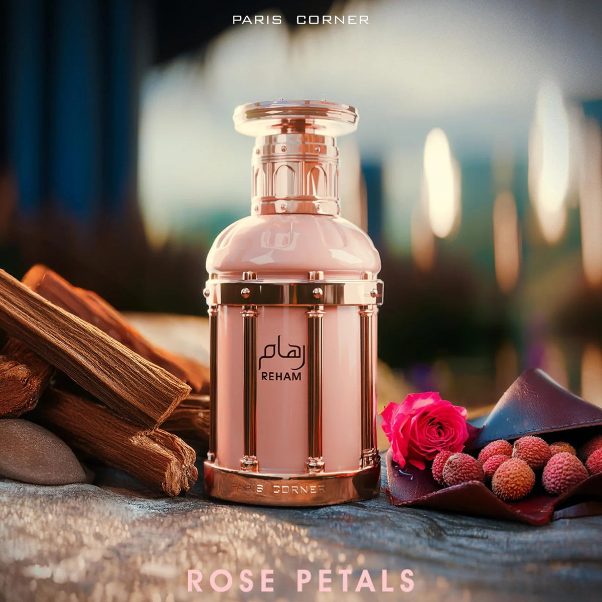 Reham Rose Petal EDP captures the essence of Parisian elegance through a meticulously layered composition. The opening unfolds with vibrant raspberry and lychee, brightened by bergamot's citrus clarity. A luxurious heart of cashmere and rose emerges, softened by aqueous notes that add ethereal refinement. The fragrance settles into a sophisticated base of musk, sandalwood, and ambery accords with subtle sweetness, creating a memorable sillage that lingers gracefully throughout the day.