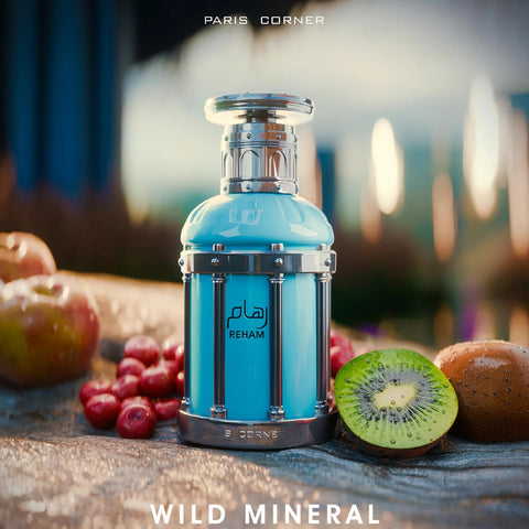 REHAM WILD MINERAL EDP opens with a vibrant burst of pink pepper, peach, and kiwi—a fresh, fruity introduction that immediately captures attention. The composition evolves into a sophisticated heart of lotus, marine, and sandalwood, creating an aquatic elegance with woody undertones. The fragrance settles into a warm, sensual base of ambergris, sugar, and oakmoss, delivering lasting depth and complexity. This expertly balanced eau de parfum blends citrus brightness with mineral freshness and creamy warmth, making it an ideal choice for those seeking a refined, multidimensional scent experience.