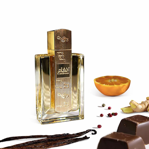 100ML ANGHAM LATTAFA opens with a vibrant burst of ginger, mandarin, and pink pepper that immediately captivates the senses. The composition gracefully transitions into a sophisticated heart of lavender, praline, cacao, and jasmine, creating a luxurious and multidimensional character. This fragrance settles into a warm, sensual base of vanilla, amber, and musk that lingers beautifully throughout the day. A masterfully balanced composition that seamlessly blends spiced citrus brightness with creamy sweetness and earthy depth, making it an exceptional choice for those who appreciate refined olfactory complexity.