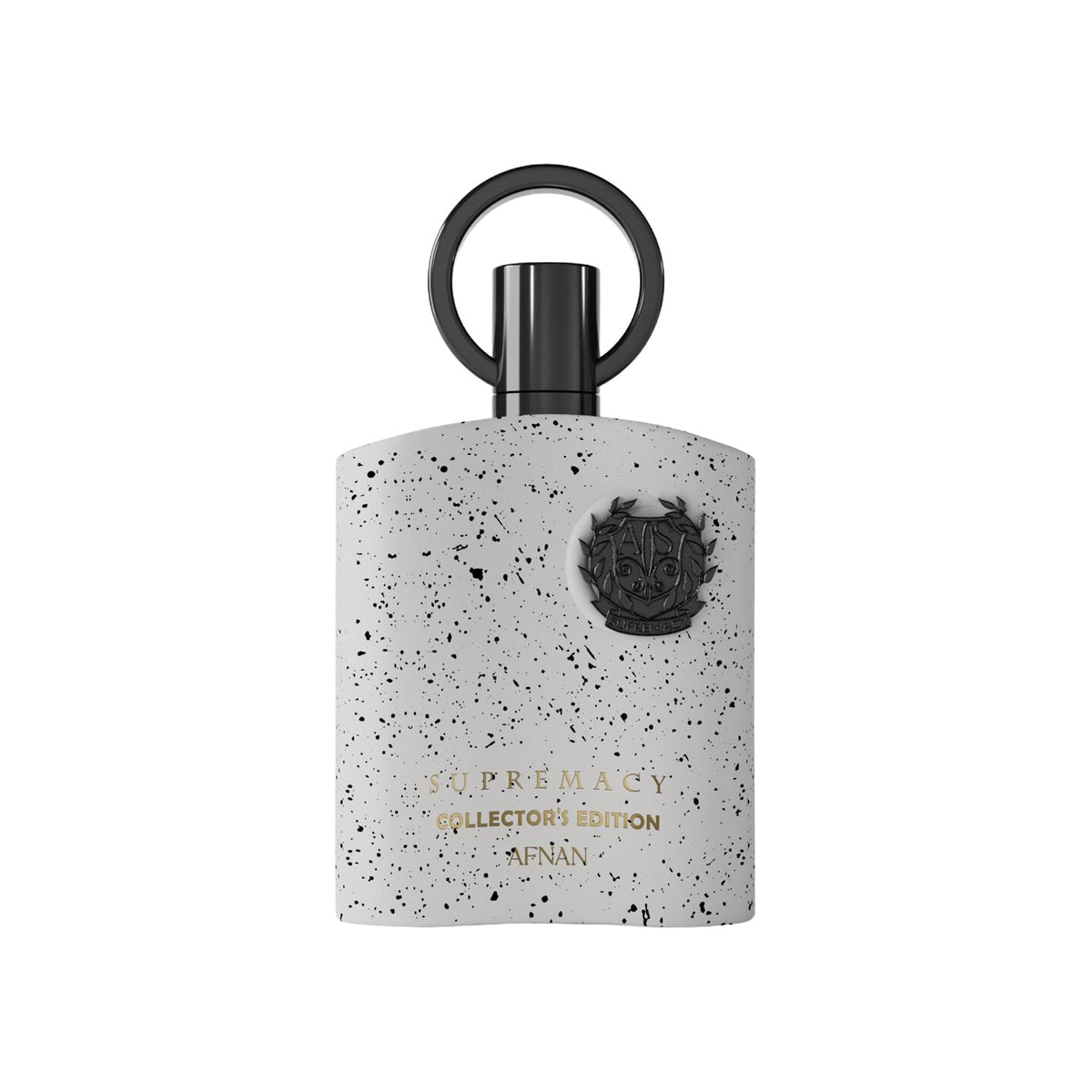 Crafted by master perfumer Imran Fazlani, Supremacy Collector's Editor Homme Afnan opens with a vibrant burst of pineapple and bergamot, brightened by crisp apple and delicate white florals. The composition evolves into a sophisticated heart of orange blossom, birch, and warm amber, creating depth and complexity. It settles into a distinguished base of oak moss, sensual musk, and ambergris, delivering a refined finish that lingers with understated elegance. A distinguished fragrance for the discerning gentleman.