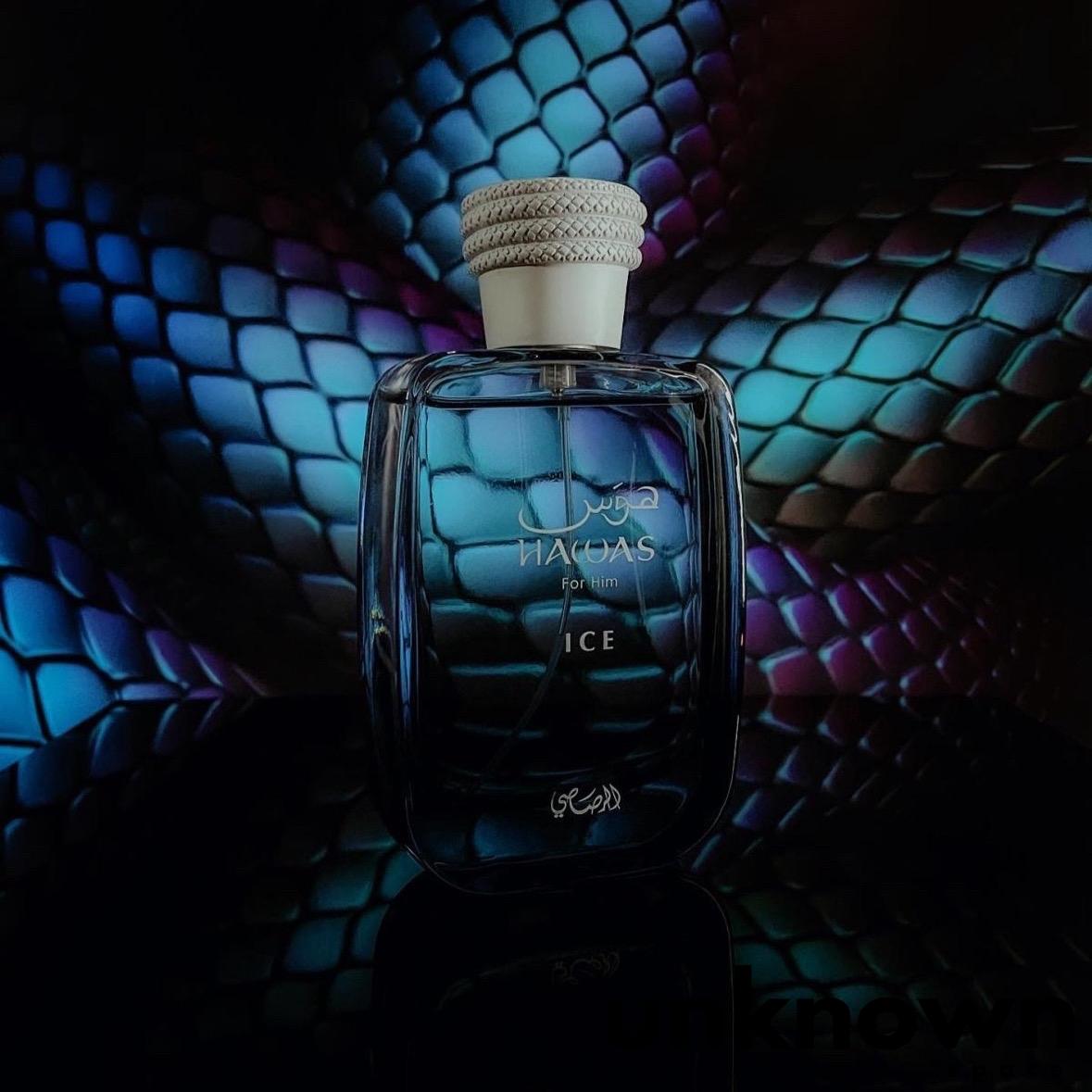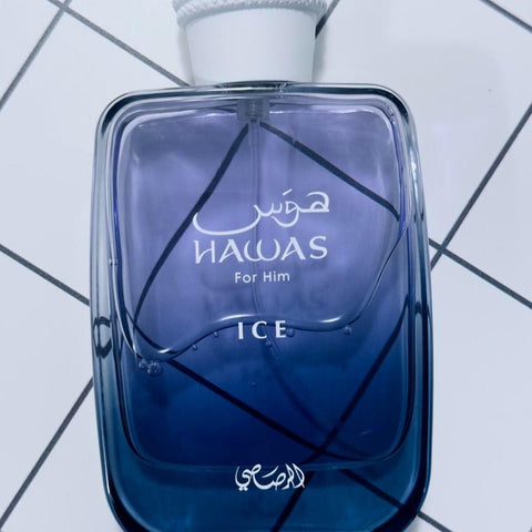 Hawas Ice for Him by Rasasi is a Aromatic fragrance for men. This is a new fragrance. Hawas Ice for Him was launched in 2023. Top notes are Apple, Italian Lemon, Sicilian Bergamot and Star Anise; middle notes are Plum, Orange Blossom and Cardamon; base notes are Musk, Amber, Moss and Driftwood.